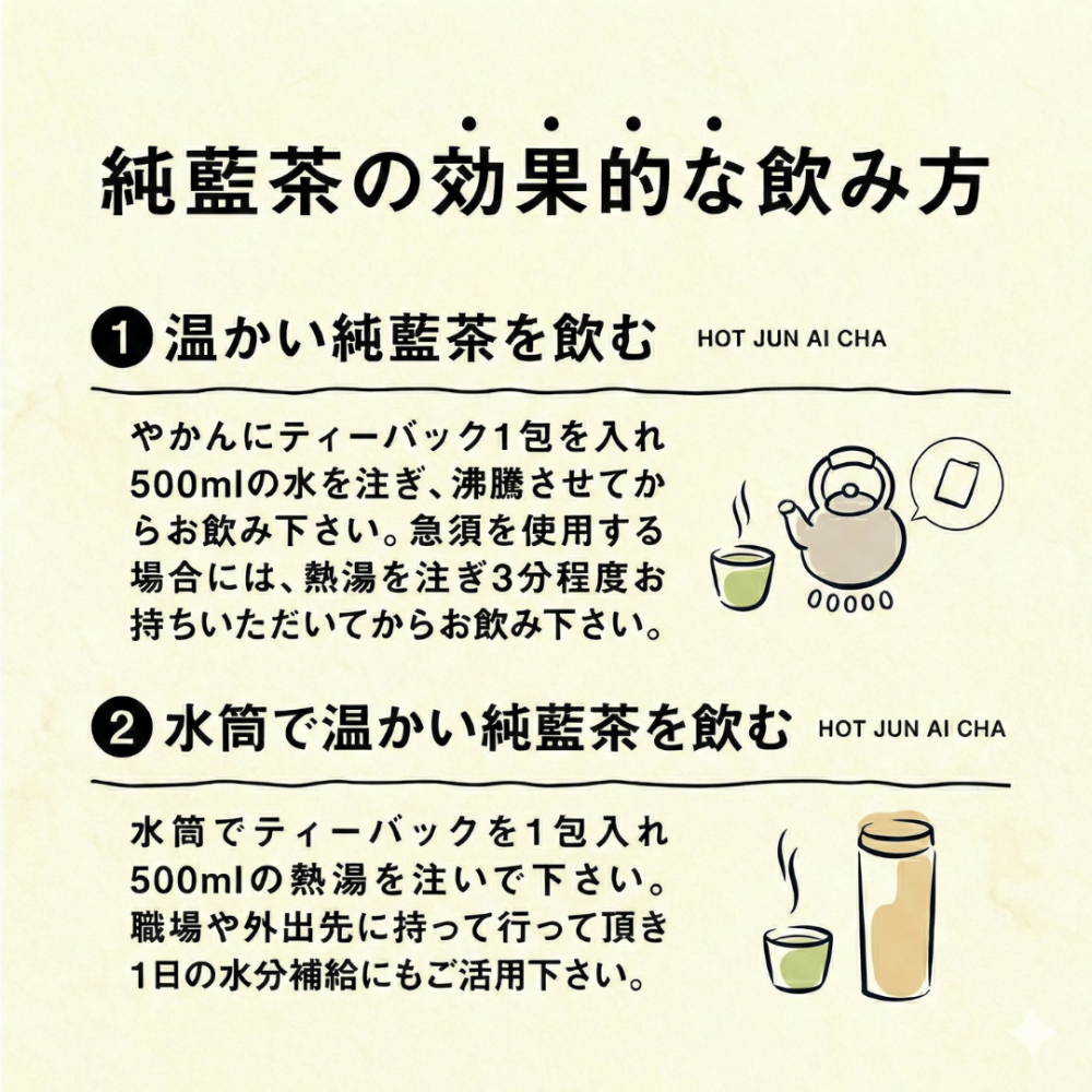 500mlのお水にティーパック1包を入れ、やかん等で煮出してお飲み下さい。